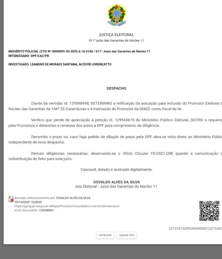O vice prefeito de Ibema PR. Altevir Lourençato-Podemos responde inquérito por suposta compra de votos.