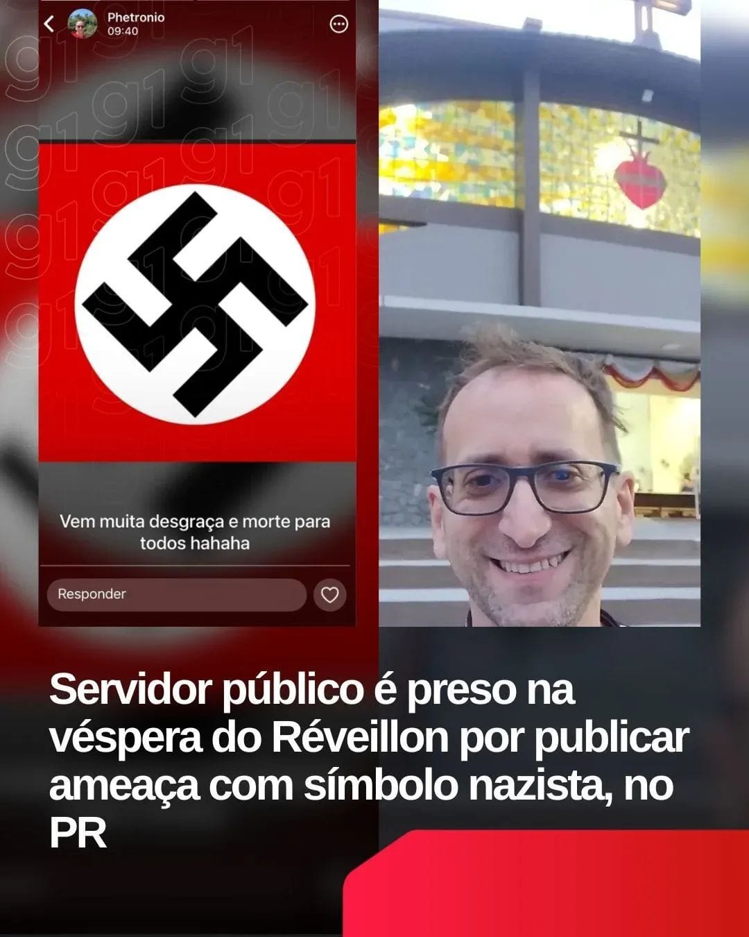 O servidor público Phetronio Paulo de Medeiros, que trabalha no Instituto Federal do Paraná (IFPR) em Irati, na região central do Paraná, foi preso preventivamente na véspera do Réveillon suspeito de apologia ao nazismo, ameaça de atentado e veiculação de símbolos nazistas em diversas redes sociais.