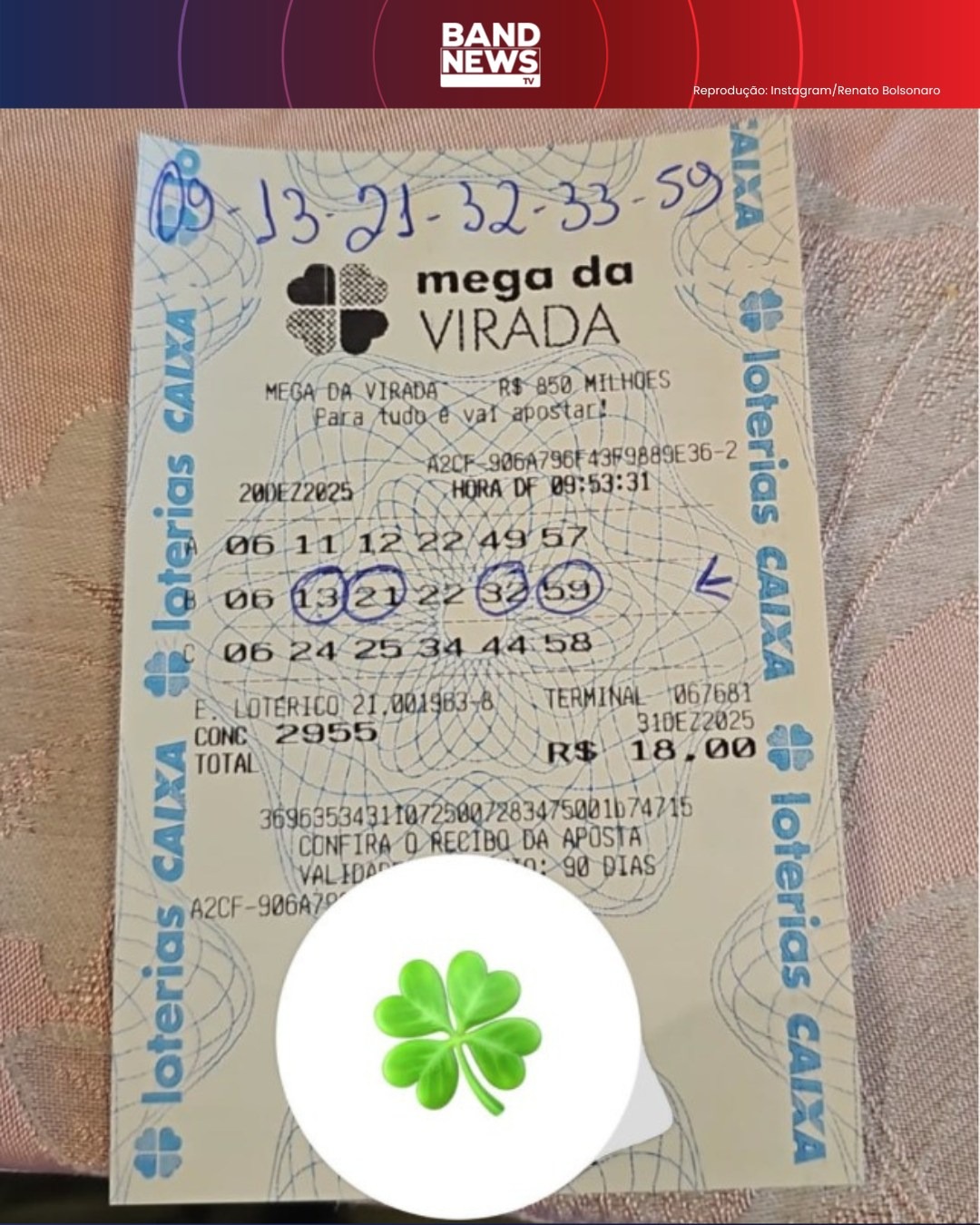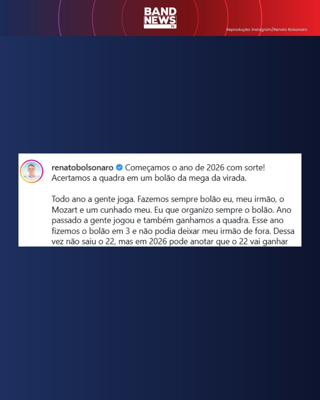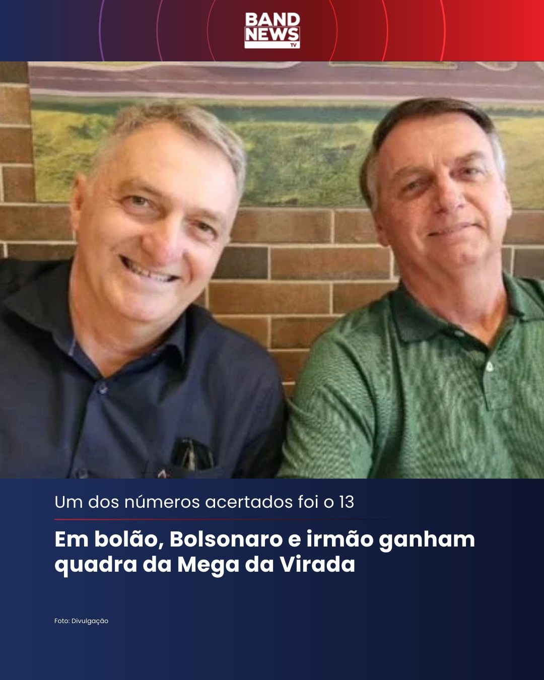 O ex-presidente Jair Bolsonaro ganhou a quadra na Mega da Virada. A aposta premiada na quinta-feira (1º) foi feita em bolão com o irmão, Renato Bolsonaro, e mais um assessor.